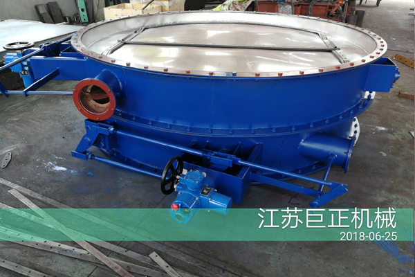 本公司設計生產的圓形擋板門主要由由框架、葉片、密封片、主軸、軸承、軸封、曲柄連桿機構、執行機構(選購件)等幾部分組成。該類產品制作工藝符合相關行業標準;產品精工制作,噴涂細致均勻,此為產品現場展示圖。